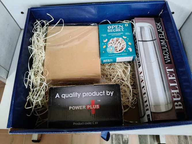 1. .Festive Gift Set of 5- Om Tealight holder, Mini PC Speaker, Bullet Vacuum Flask